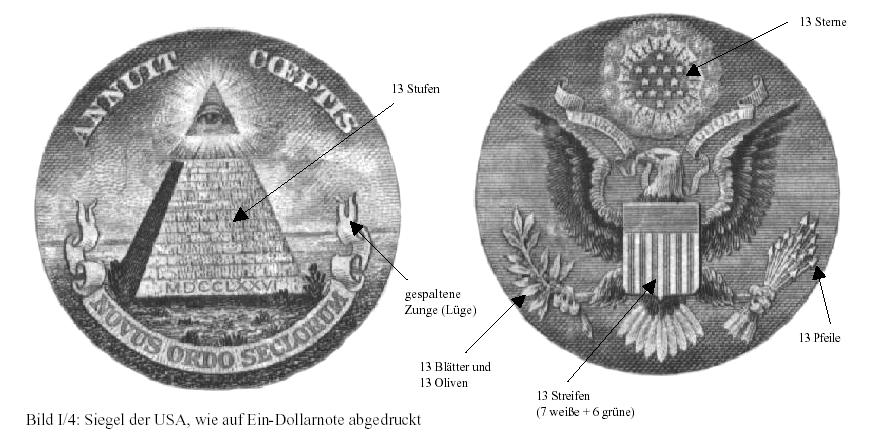 به پشت دلار آمریکا نگاه کنید؛ در این نماد ها 5 تا عدد 13 می بینید.
